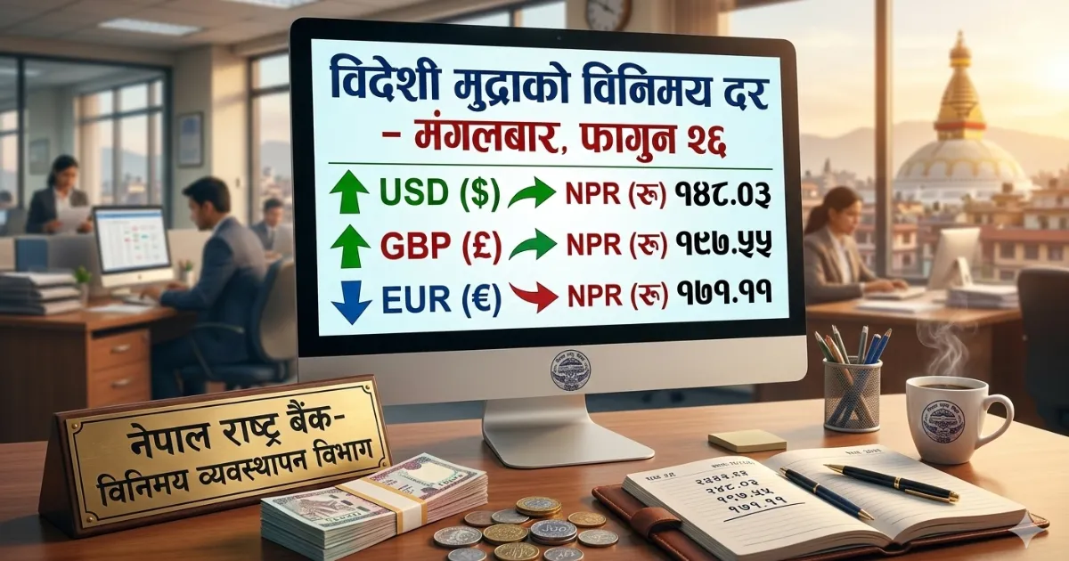 काठमाडौँ । नेपाल राष्ट्र बैंकले आज मंगलबारका लागि विदेशी मुद्राको विनिमय दर सार्वजनिक गरेको छ। राष्ट्र बैंकको पछिल्लो विवरण अनुसार विदेशी मुद्राहरूको तुलनामा नेपाली रुपैयाँ केही कमजोर देखिएको छ।