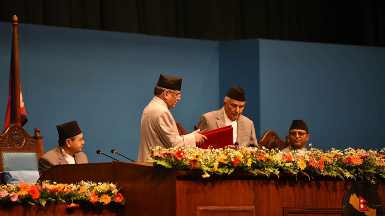 ११- संविधान र संघीयताको प्रभावकारी कार्यान्वयन, अर्थतन्त्रको संरचनात्मक सुधार, सार्वजनिक खर्चमा मितव्ययिता, पूँजीगत खर्च वृद्धि, गुणस्तरीय पूर्वाधार निर्माण शासकीय व्यवस्था र सेवा प्रवाहमा सुधार¸ भ्रष्टावचार नियन्त्रण, उत्पादन र रोजगारी वृद्धि हरित अर्थतन्त्रको विकास, पर्यावरणीय सन्तुलन, आर्थिक-सामाजिक विभेदको अन्त्य, गरिबी निवारण, समावेशी विकास¸ शान्ति प्रक्रियाको तार्किक निष्कर्ष, मुलुकको राष्ट्रिय हितको रक्षा एवं स्वतन्त्र र सन्तुलित परराष्ट्र नीतिको अवलम्बन सरकारका प्रमुख नीतिगत प्राथमिकता हुनेछन्।