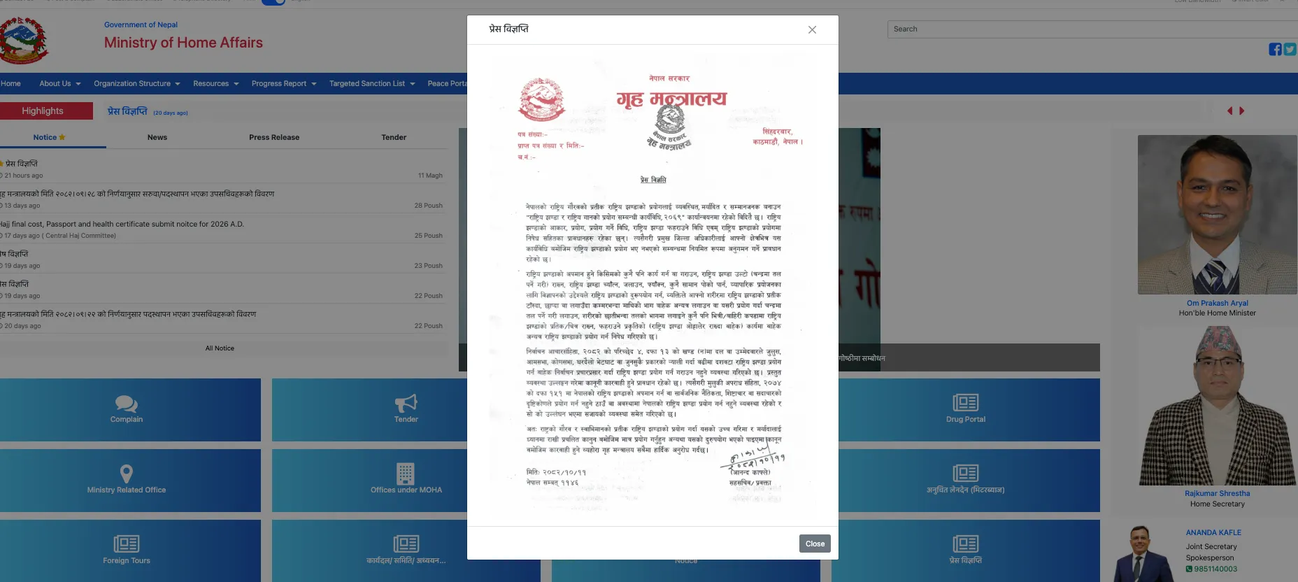 मन्त्रालयका प्रवक्ता आनन्द काफ्लेद्वारा जारी विज्ञप्तिमा राष्ट्रको गौरव र स्वाभिमानको प्रतीक झण्डालाई उच्च गरिमाका साथ प्रयोग गर्न र कानुन उल्लंघन नगर्न सबैमा हार्दिक अनुरोध गरिएको छ।