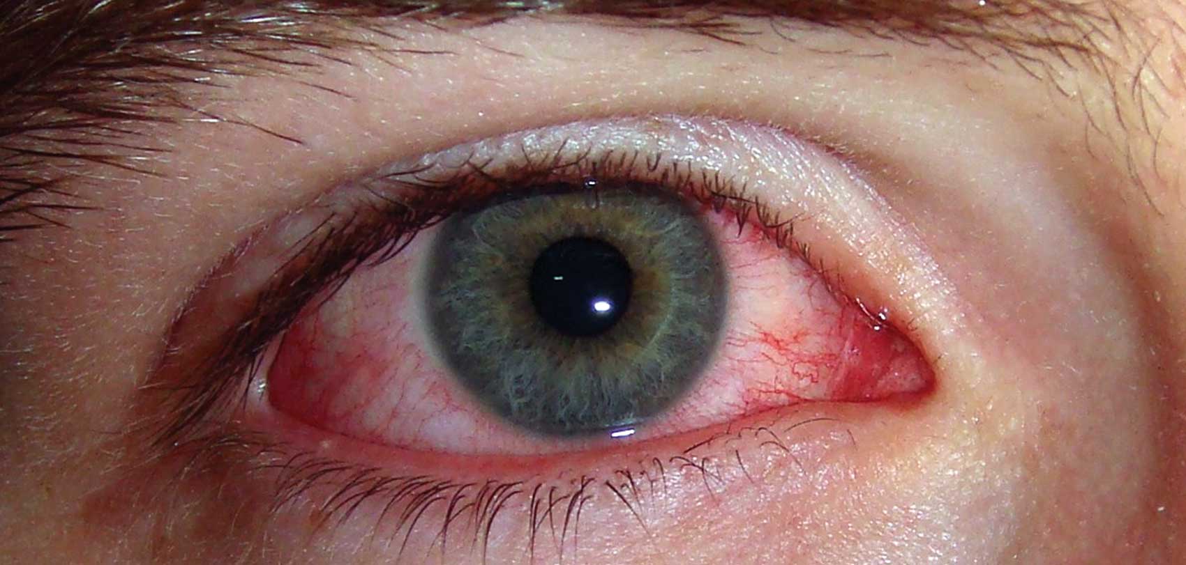 आँखा बिझाएजस्तो हुने, घाममा हिँड्न गाह्रो हुने, उज्यालोमा हेर्न गाह्रो हुने, आँखा सुख्खा भएर चिलाउने, दृष्टि धमिलो हुँदै जाने, आँखा तथा आँखा वरपरको भाग सुन्निने, बिहान उठ्दा आँखाको ढकनी पूरै टाँसिने र आँखा खोल्न गाह्रो हुने चम्किलो प्रकाशमा हेर्न गाह्रो हुने वा सूर्यको किरणमा हेर्दा आँखा पोल्ने साथै बिरामीलाई हल्का ज्वरो आउने, शरीर गल्नेलगायतका लक्षण देखा पर्छन्।