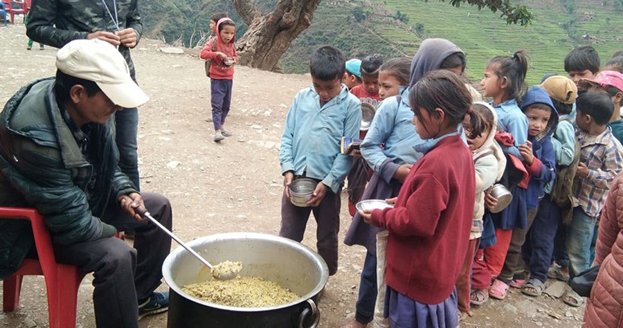 अर्थमन्त्री विष्णु पौडेले आगमी वर्षका बजेट सार्वजनिक गर्दै सामुदायिक विद्यालयका विद्यार्थीहरुको पोषणस्तर सुधार ल्याउन र विद्यार्थीहरुलाई विद्यालयमा टिकाइ राख्न सो रकम विनियोजन गरेको बताए ।