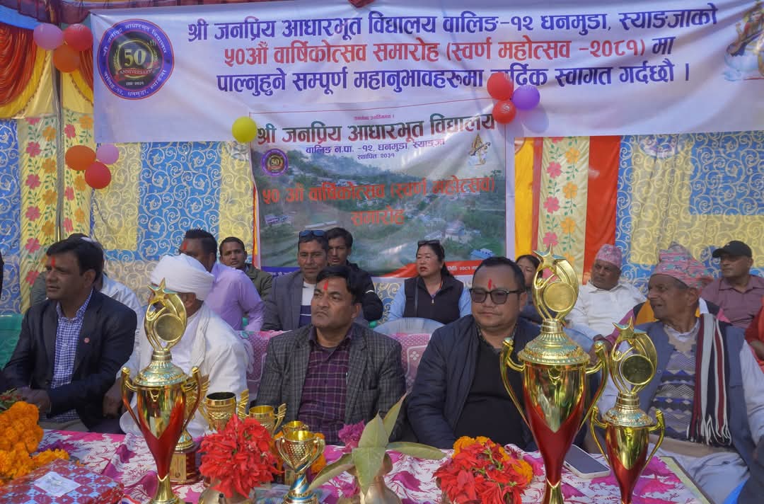 माघ २२ स्याङ्जा। स्याङ्जा जिल्ला वालिङ नगरपालिका  १२ मा अवस्थित श्री जनप्रिय आधारभूत विद्यालयले ५० वर्ष पूरा भएको अवसर पारी स्वर्ण महोत्सव मनाएको छ। २०३१ साल माघ २१ गते स्थापना भएको उक्त विद्यालय २०८१ साल माघ महिना २१ गते ५० वर्ष पार गरी ५१ वर्षमा प्रवेश गरेको अवसरमा विभिन्न कार्यक्रमहरू आयोजना गरी मनाएको उक्त स्वर्ण महोत्सवमा हाजिर जवाफ तथा एकदमै अनौठो अभिभावकहरूको मेच घुमाई कार्यक्रम पनि आयोजना गरेको थियो।