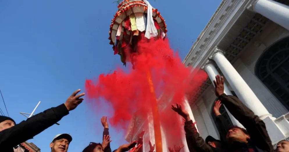 काठमाडाैं । काठमाडाैंकाे वसन्तपुर क्षेत्रमा मंगलबार तीन खण्डे चीर ठड्याउँदै यस वर्षकाे हाेलीकाे औपचारिक शुभारम्भ गरिएको छ।