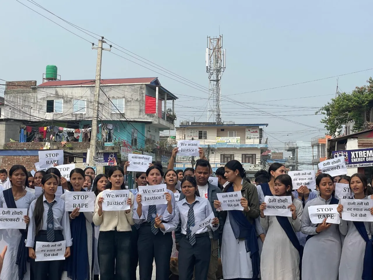 प्रदर्शनमा सहभागी विद्यार्थीहरूले प्लेकार्ड बोक्दै नारा लगाएका थिए । “इनिशालाई न्याय दे !“ “बलात्कारीलाई फाँसी दे !“ “महिला सुरक्षाको ग्यारेन्टी गर !“ भन्दै विद्यार्थिले नारा लगाएका थिए ।