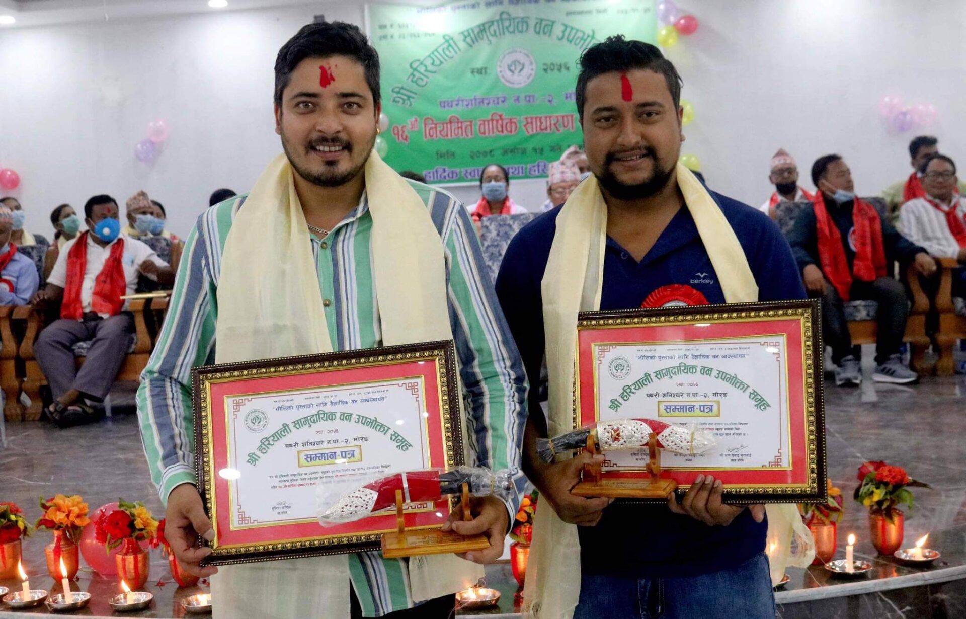 मोरङको पथरीशनिश्चरेमा रहेको हरियाली सामुदायीक वन उपभोक्ता समूहले पथरीशनिश्चरेमा सक्रिय पत्रकारीता गदै आएका दुई पत्रकार लगायतलाई सम्मान गर्दै १६ औँ वार्षिक साधारण सभा सम्पन्न गरेको छ ।